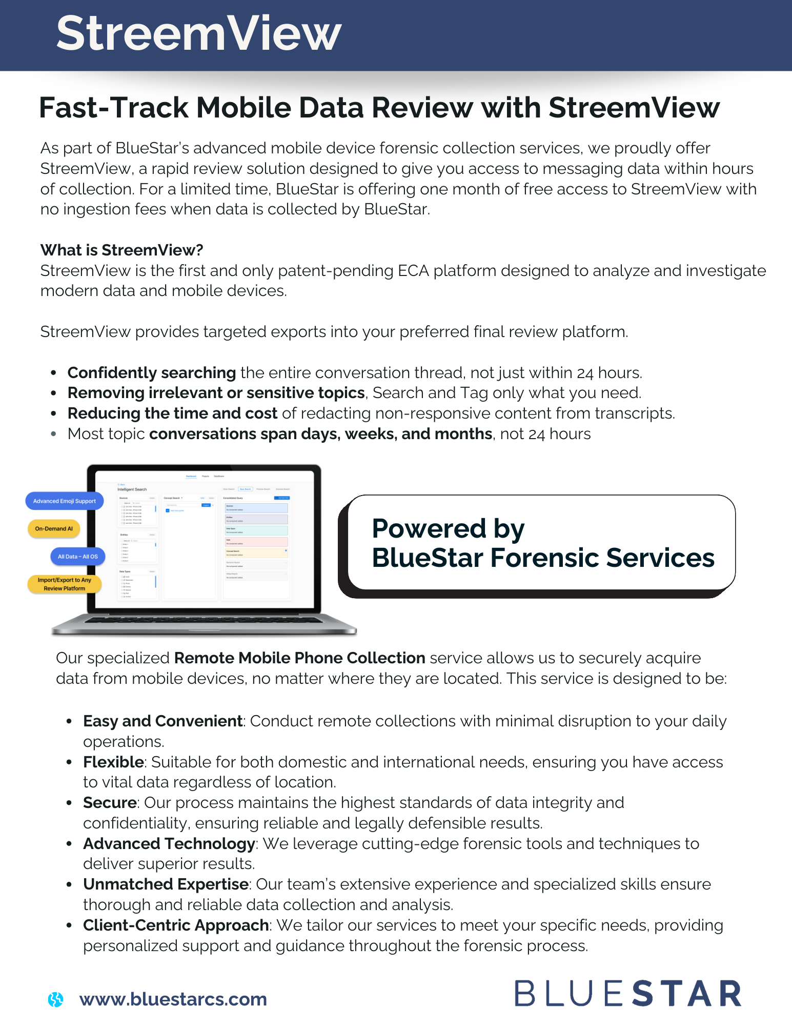 For a limited time, BlueStar offers one month of free StreemView access with no ingestion fees if BlueStar handles the data collection. Oct 29 Written By deidra Sarego Our Blog RSS deidra Sarego
